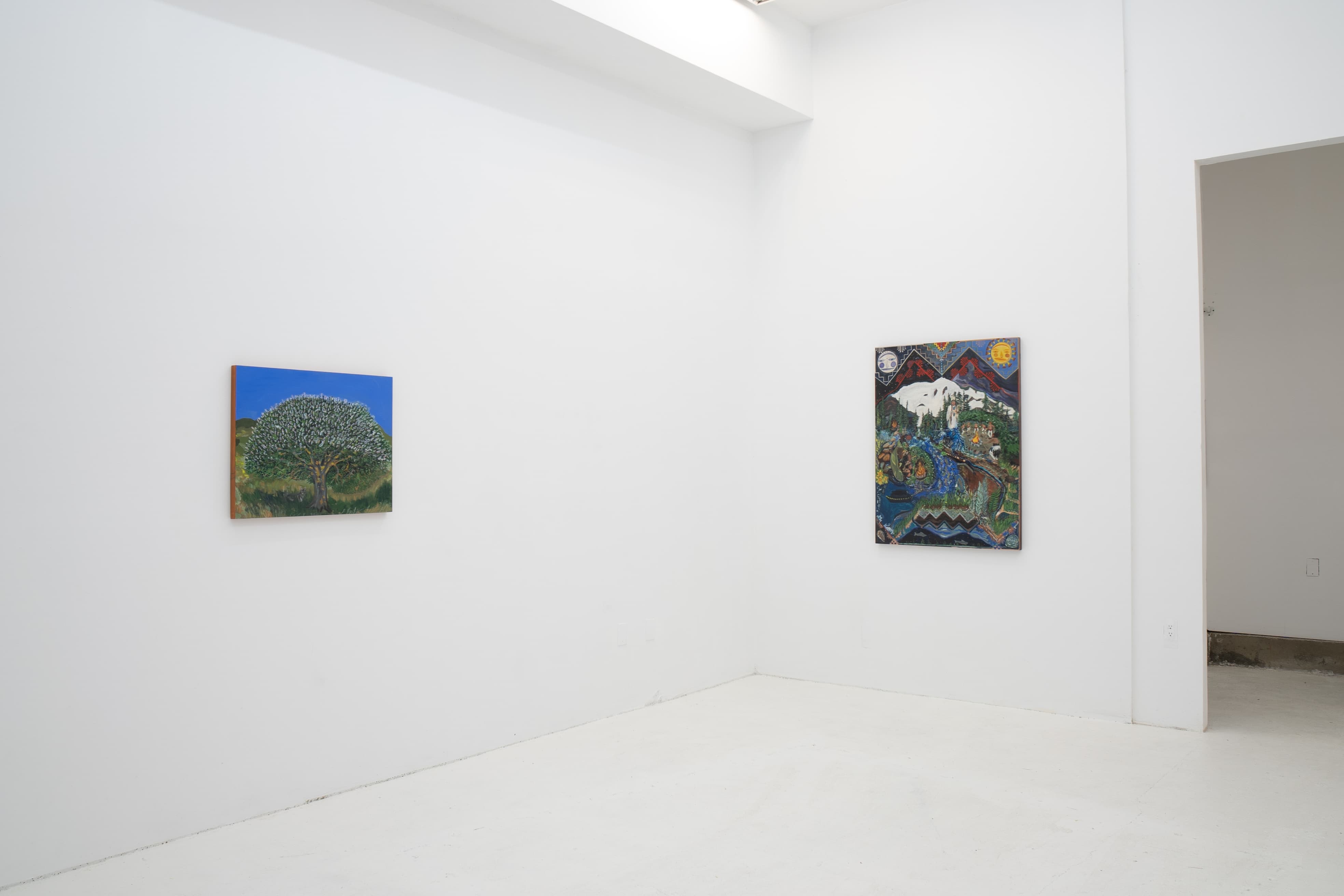 The setting for Sarita Doe’s paintings is an expanse of time, only partially visible through their tightly patterned and deeply pigmented compositions on display in alter eco. Through close observations of specific sites of land, prayer and offerings towards soil regeneration, and a witnessing of the collaboration and co-conspirator-ship of the flora and fauna around her, Doe seeks a suspension of the self’s temporal experience as a singularity, felt in isolation, in the anthropomorphic realm, to calibrate to the rhythms and movements of habitats within the natural world. She does so as a way to better understand grief, change, knowledge, her own child – to make sense of other’s lived experiences, to sense how they might make sense of her, and of us, in turn. The paintings are the results of this process, a document of sorts in noticing the space we share with so much life around us. She is a student. She is a teacher.