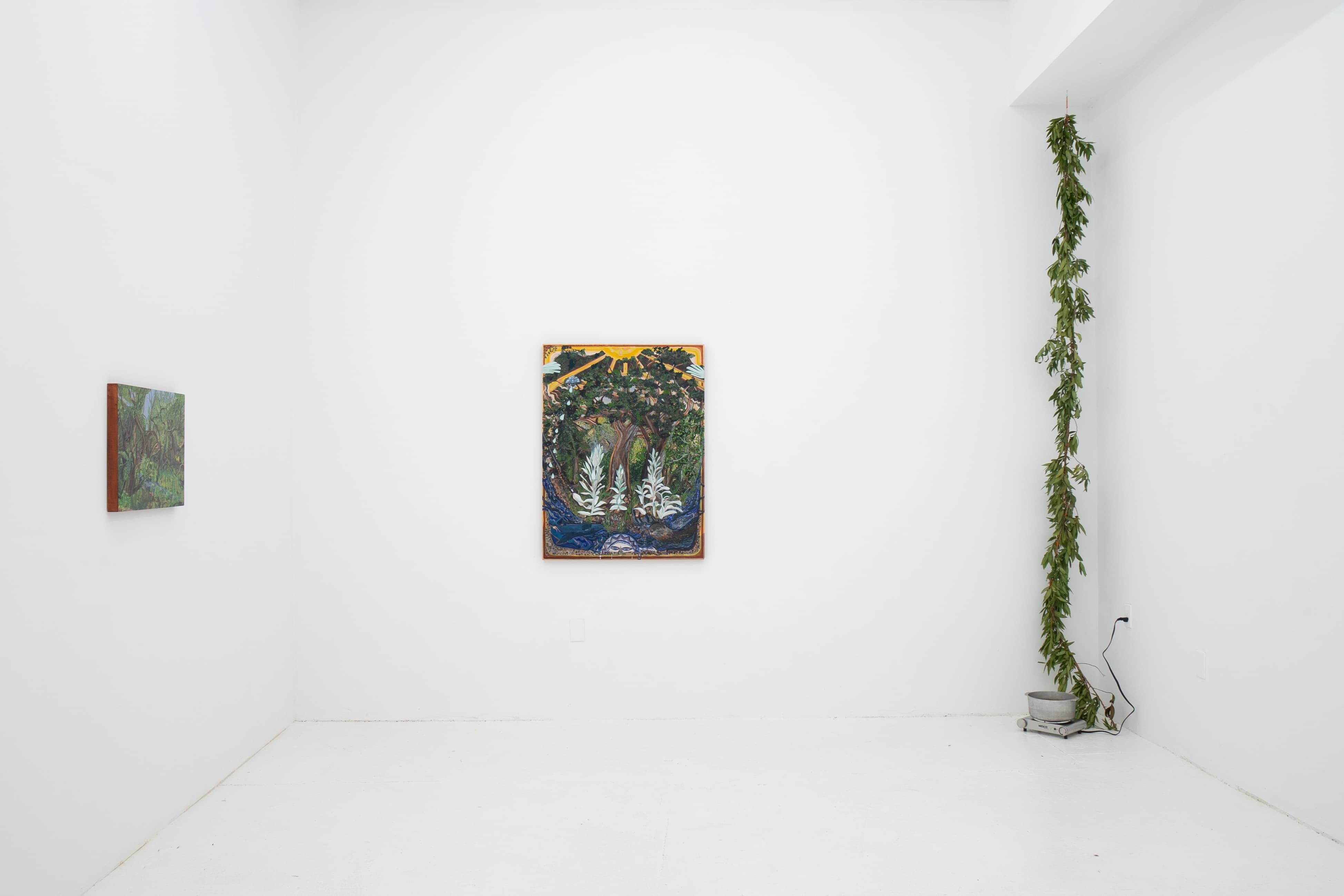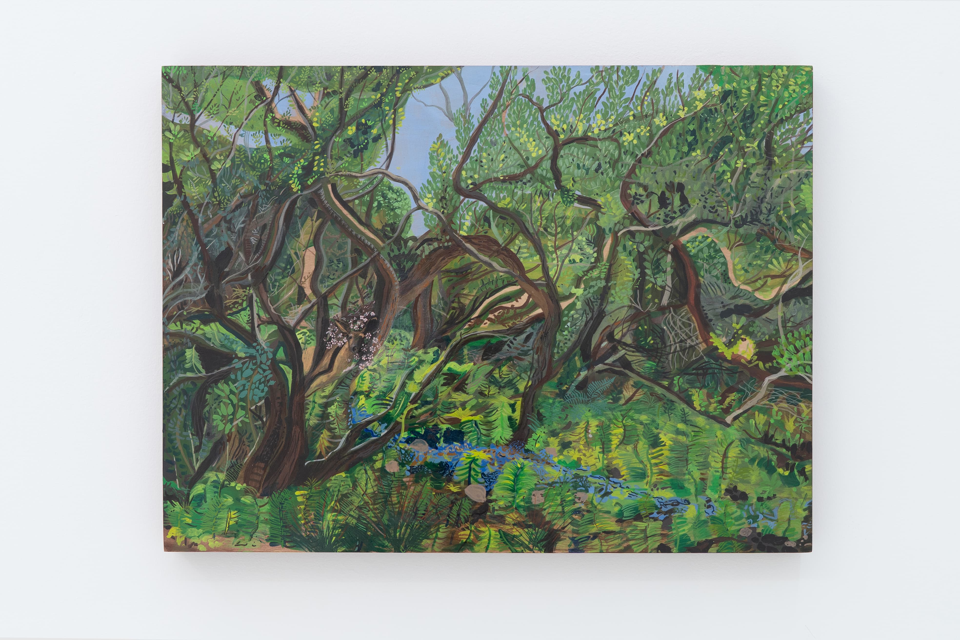 The setting for Sarita Doe’s paintings is an expanse of time, only partially visible through their tightly patterned and deeply pigmented compositions on display in alter eco. Through close observations of specific sites of land, prayer and offerings towards soil regeneration, and a witnessing of the collaboration and co-conspirator-ship of the flora and fauna around her, Doe seeks a suspension of the self’s temporal experience as a singularity, felt in isolation, in the anthropomorphic realm, to calibrate to the rhythms and movements of habitats within the natural world. She does so as a way to better understand grief, change, knowledge, her own child – to make sense of other’s lived experiences, to sense how they might make sense of her, and of us, in turn. The paintings are the results of this process, a document of sorts in noticing the space we share with so much life around us. She is a student. She is a teacher.